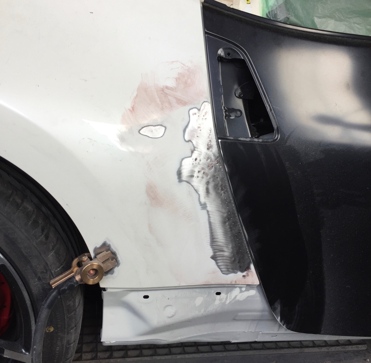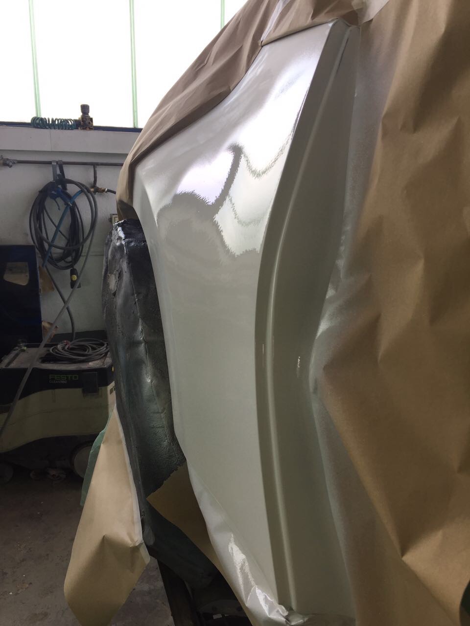 Manchmal lassen sich Teile, wie hier im Bild zu sehen, auch gut demontieren um Korrosion zu entfernen und dass ist dann auch nötig. Allerdings ist manchmal auch das Ersetzen des Karosserieteiles notwendig, wie hier beim vorderen Kotflügel. Das Neuteil wird dann innen mit einem Unterbodenschutz behandelt, so dass das verbaute Neuteil dann länger hält.